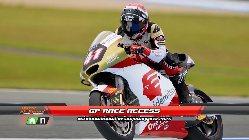World of Speed สุดขีดความเร็ว พบกันคืนวันพุธที่ 21 มกราคม ช่วง GP Race Access by Idemitsu เหล่านักบิดอิเดมิตสึ พร้อมลุยต่อฤดูกาล 2026 รวมบทสัมภาษณ์เหล่านักบิดทั้งทางเรียบและทางฝุ่นจากปี 2025 ที่ลงแข่งขันในการการที่สนับสนุนโดยอิเดมิตสึมาฝากกันอีกครั้ง ก่อนที่พวกเขาและเธอกำลังจะกลับมาสวมชุดแข่งลงแทร็กในปีปฏิทิน 2026 นี้