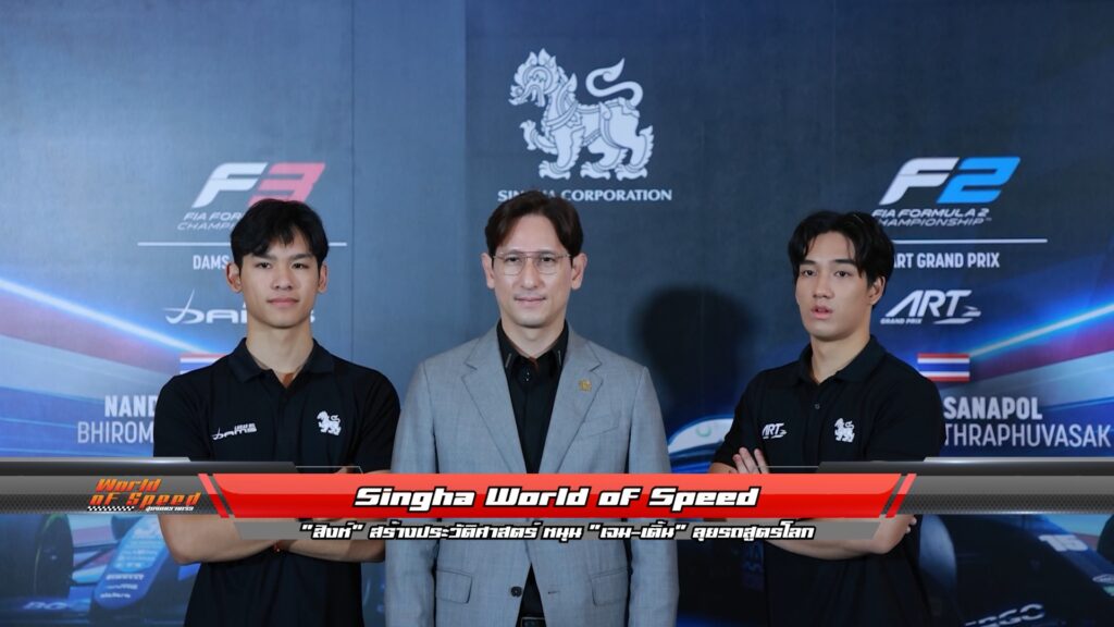 ช่วง “Singha World of Speed” “สิงห์” สร้างประวัติศาสตร์ หนุน “เจม-เติ้น” ลุยรถสูตรโลกในฤดูกาล 2026 ถือเป็นก้าวสำคัญของวงการมอเตอร์สปอร์ตไทยที่จะมีนักขับไทยลงแข่งรถสูตรชิงแชมป์โลกครบ 3 รุ่นเป็นครั้งแรก ซึ่ง “สิงห์ คอร์เปอเรชั่น” โดย คุณวรวุฒิ ภิรมย์ภักดี ประกาศเดินหน้าผลักดันนักแข่งไทยสู่เส้นทางระดับสากลอย่างต่อเนื่อง ทั้ง “เติ้น-ทัศนพล” และ “เจม-นันทวุฒิ” ที่ได้รับโอกาสลงแข่งขันใน Formula 2 และ Formula 3 ฤดูกาลนี้