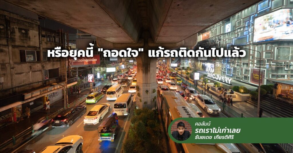 ฉะนั้น ถ้าจะบอกว่านโยบายยุคนี้ “ถอดใจ” แก้ปัญหารถติดไปแล้วก็คงจะไม่ผิดนัก แต่หันไปใช้วิธีสร้างทางเลือกใหม่ ๆ แทน อาทิ ต่อให้รถติดแค่ไหน ถ้าคุณมีรถไฟฟ้าที่ราคาถูกและเข้าถึงหน้าบ้าน คุณก็ยังมีทางรอดที่จะไปทำงานทันเวลา หรือพยายามทำให้ผู้ที่ใช้รถส่วนตัวให้มาใช้บริการขนส่งมวลชนสาธารณะแทน