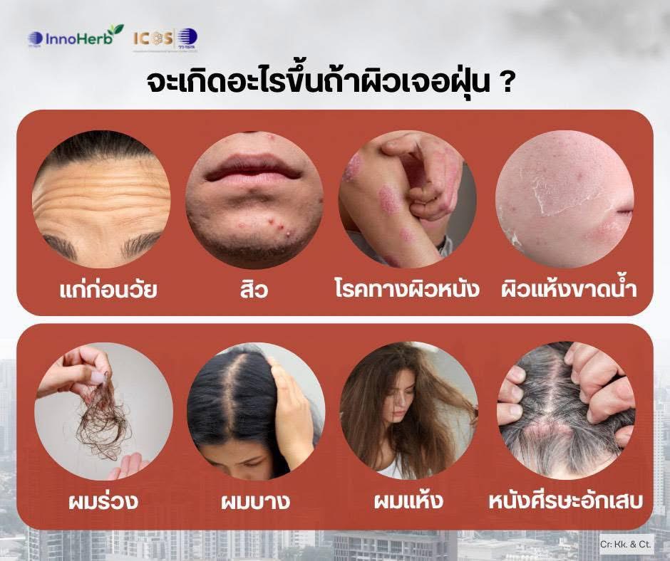 โดย PM สามารถทะลุผ่านชั้นผิวหนังและกระตุ้นกลไกทำลายเซลล์หลัก 2 ประการ ซึ่งจะนำไปสู่ปัญหาผิวเรื้อรัง ได้แก่ ภาวะเครียดออกซิเดชัน (Oxidative Stress) ส่งผลให้การสร้างอนุมูลอิสระ (ROS) เกินขนาด ทำลาย DNA โปรตีน และไขมันในเซลล์ ซึ่งเป็นสาเหตุของการแก่ก่อนวัย และการอักเสบ (Inflammation) ที่กระตุ้นวิถีสัญญาณก่อให้เกิดการอักเสบ นำไปสู่ปัญหาผิวหนังอักเสบ สิว และหนังศีรษะอักเสบ