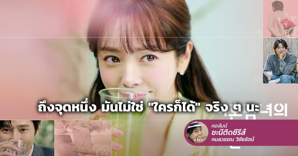 เท่าที่ดูมา 2 อีพี The Practical Guide to Love ไม่ใช่ซีรีส์ที่เล่าแค่เรื่องราวความรักของคนโสดวัยทำงานยุคใหม่ ที่หลายคนแสวงหาความมีประสิทธิภาพในการออกเดต โดยเฉพาะการเริ่มต้นความสัมพันธ์จากการนัดบอด (หรือแม้แต่ความสัมพันธ์ที่ได้มาจากการปัดขวาในแอปฯ หาคู่ก็ตามที) แต่มันยังชวนให้คิดว่าพอเราเข้าวัย 30+ แล้วยังโสด เราจะเป็นคนโสดแบบไหน โสดแบบยังมีไฟที่จะรอความรักที่ใช่ของตัวเองต่อไป โสดแบบรู้สึกสิ้นหวัง รู้สึกตะหงิดกับวัยเลข 3 ว่ามันแก่เกินแกงซะแล้วหรือเปล่า หรือโสดแบบภูมิใจโสด โสดแบบนี้แหละที่ตั้งใจ ไม่ว่าจะด้วยเหตุผลใดก็ตาม เพราะเชื่อว่าส่วนใหญ่ของคนวัยนี้จะรู้สึกคล้าย ๆ กัน ว่าจะมีแฟนทีใคร ๆ ก็อยากให้มันจบที่ “คนที่ใช่” ไม่ใช่แค่ “ใครก็ได้” ทั้งนั้นแหละ เพราะนาฬิกาชีวิตมันไม่ได้ว่างมานั่งเล่นเกมทายใจไปวัน ๆ แล้ว
