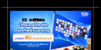HOT DEAL บัตรเครดิต ttb ยกทัพร้านอาหารมากกว่า 60 ร้าน เสิร์ฟเครดิตเงินคืน 3% และโบนัสเพิ่ม 500...